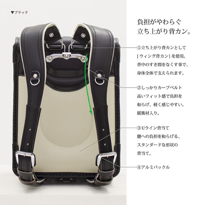 심재가 들어 가 있어 강도도 안심☆아드님의 어깨 에 따라 어깨 벨트가 움직인다,「윙배 캔」탑재에 작은 어깨로도 친절한 란도세루(초등학생이 어깨에 매는 가방).