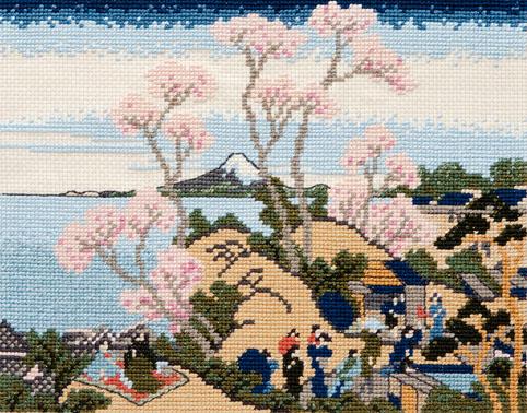 北斎画 錦絵「富嶽三十六景」四十六図より技法は、すべてクロスステッチを使用しています。技術レベルは、上級者向です。