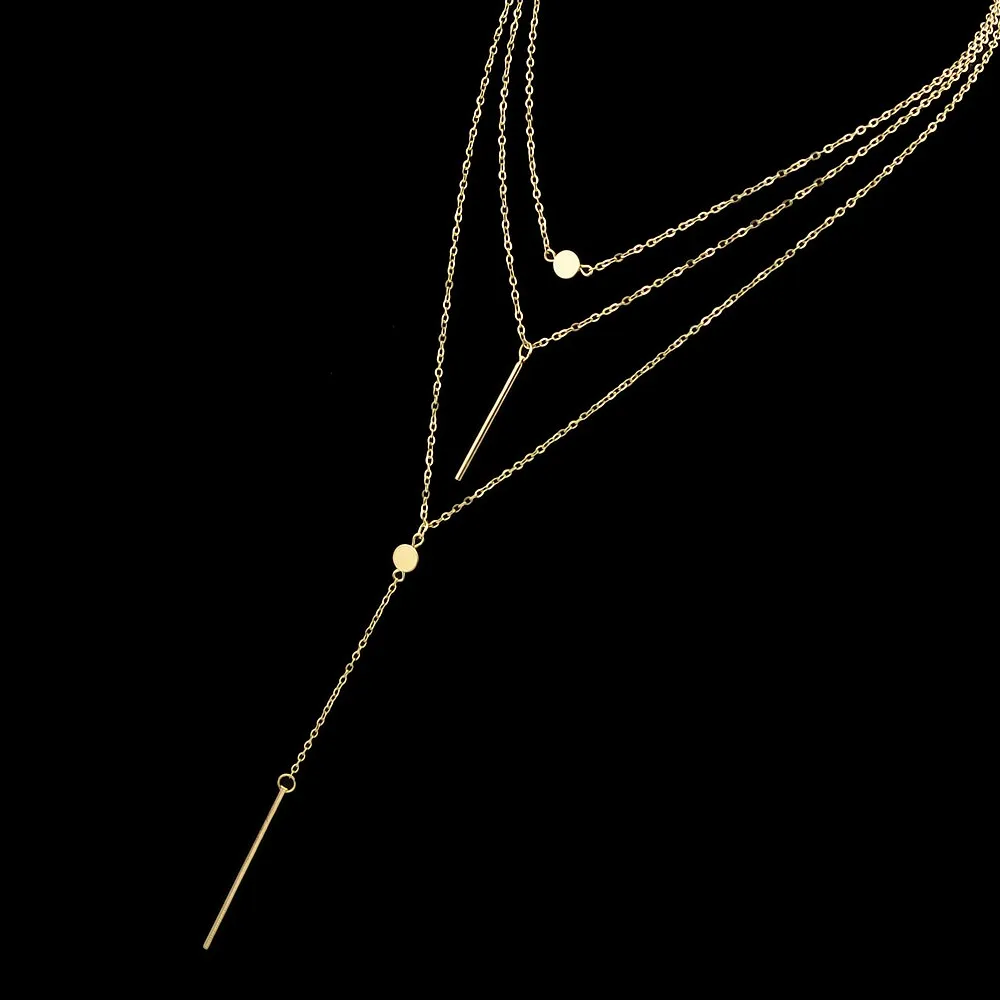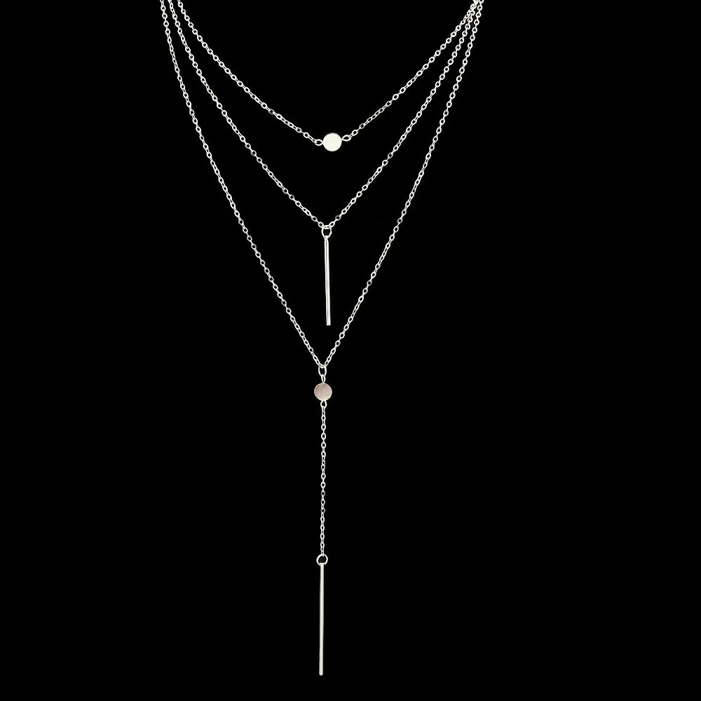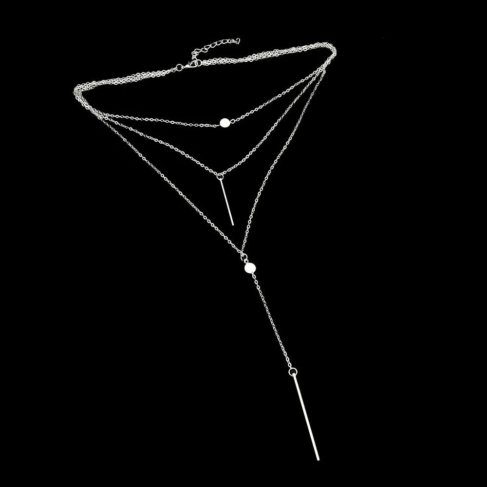 Gold-Color Silver Color Link Chain MultiLayer Chain Necklace Geometric Pendant Necklace Collier Femme
