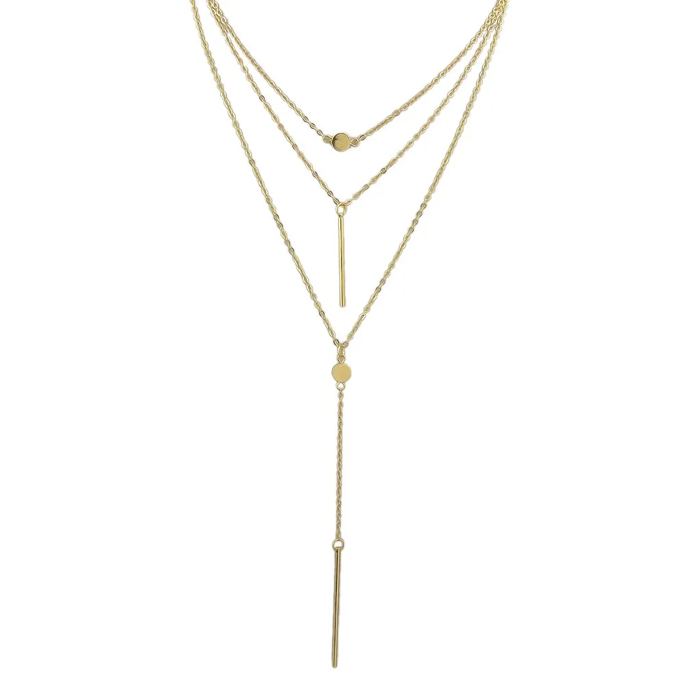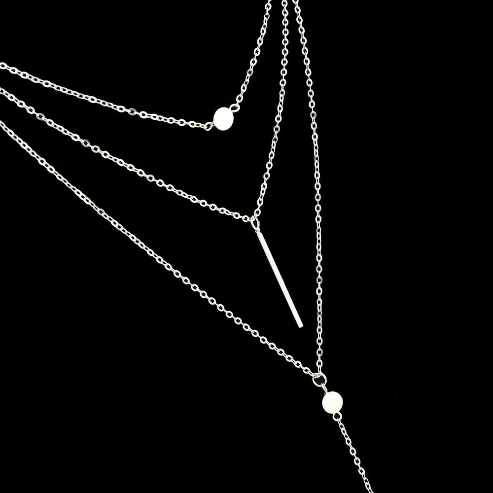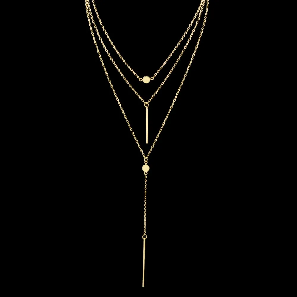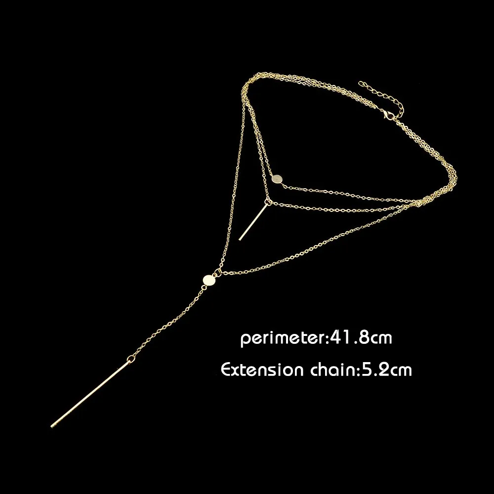 Gold-Color Silver Color Link Chain MultiLayer Chain Necklace Geometric Pendant Necklace Collier Femme