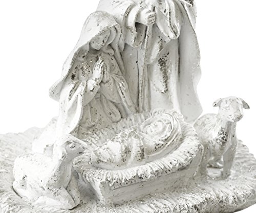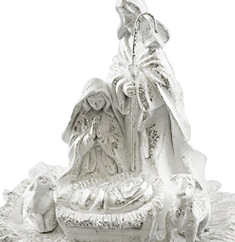 -. Binding : Kitchen -. Brand : Caffco -. Color : White -. EAN : 0885640295616 -. Feature : One Holy Family Scene Figurine / Measures 7.50"W x 7.25"H / Made of resin with distressed metallic finish / Features Mary, Joseph & Baby Jesus sitting in a bed of hay with sheep by their side / Makes a wonderful addition to any Christmas decor! -. IsAutographed : 0 -. Label : Caffco -. Manufacturer : Caffco -. PackageQuantity : 1 -. ProductGroup : Home -. ProductTypeName : HOME -. Publisher : Caffco -. Studio : Caffco -. Title : Distressed Style Holy Family Scene Figurine -. UPC : 885640295616