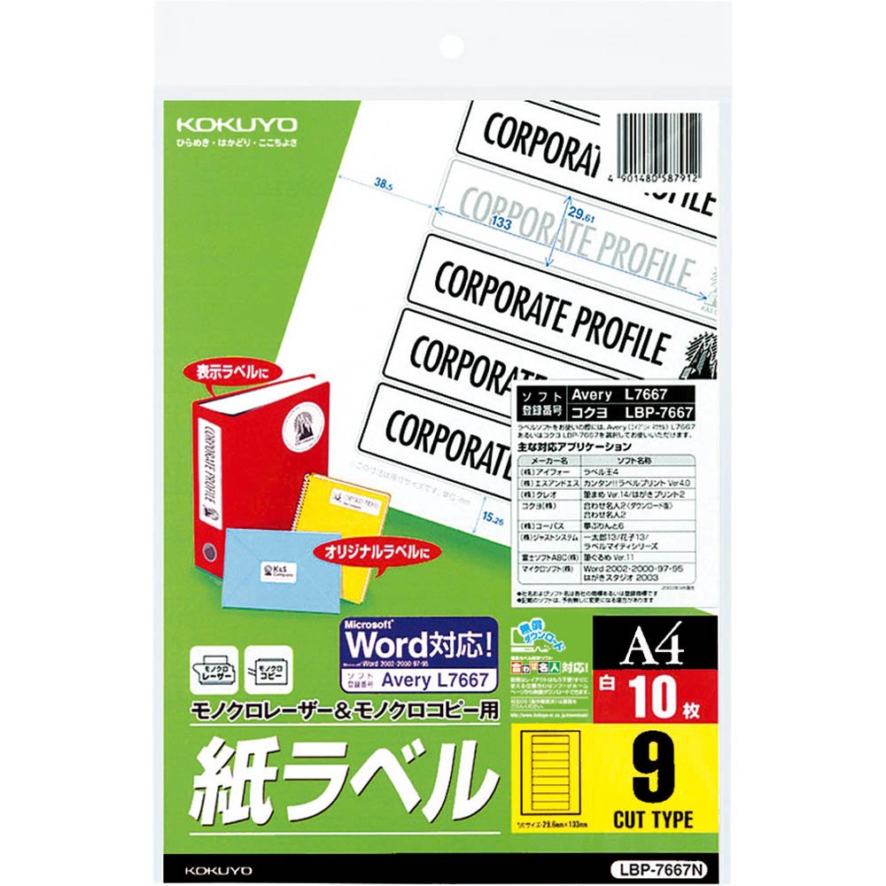 Kokuyo laser label A4 9 face LBP-7667 (japan import)