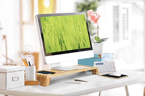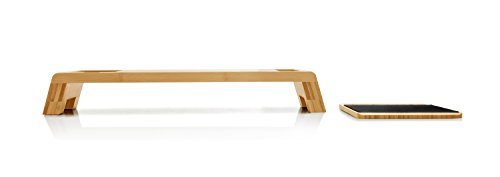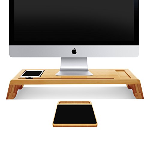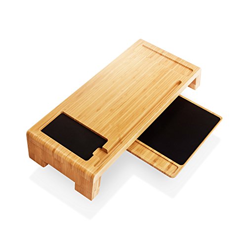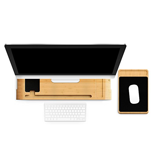 Kurrent 'Workbench' Bamboo Monitor Stand / Riser and Mouse Pad with Keyboard Storage and Organizer for Smartphones, Tablets and Desktop Gadgets