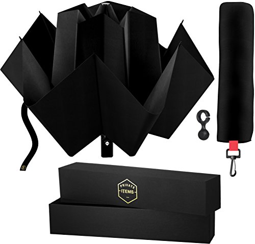 Big storms call for big coverage Don't be fooled by its' slim size. Our heavy duty inverted umbrella is proof that big things come in small packages. At the touch of a button, the canopy opens to a spacious 42.5" span to protect you and your important papers from rain, hail, sleet and snow. Sturdy fiberglass ribs react and adjust to wind force, allowing this top-rated travel umbrella to shield you from Mother Nature's most brutal elements. Weather protection in the palm of your hand With a folded length of just 12", this upward folding umbrella offers better coverage than others because it is always at your fingertips. Clip it to your backpack, stow it in a briefcase or pack it in your luggage. The easy-on / easy-off cover clips to a lanyard on the bottom of the handle so you never lose it. The umbrella folds up with another touch of the button, trapping rain water within the canopy to keep your home, office or auto dry. In addition to the slip-on cover, you'll also receive a free hanger to suspend your umbrella from a table for drying. Your umbrella arrives gift-boxed and ready to bestow as a Christmas stocking stuffer or birthday gift. Customer Satisfaction is our top priority We insist on the highest quality materials and manufacturing to bring you this deluxe inside out umbrella. We confidently offer a 30 Day Money Back Guarantee for your peace of mind. In the unlikely event that our product does not meet your expectations, return it for a 100% refund of your purchase price. Don't let a sudden downpour dampen your enthusiasm. Add our innovative Inverted Rain Umbrella to your cart today. His Private Items Upside Down Umbrella! 0 |