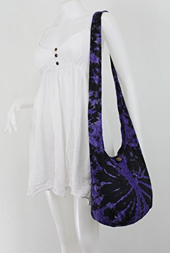 Purple Tie Dye Hippie Boho Sling Crossbody Shoulder Messenger Bag Bohemian Medium HTM87