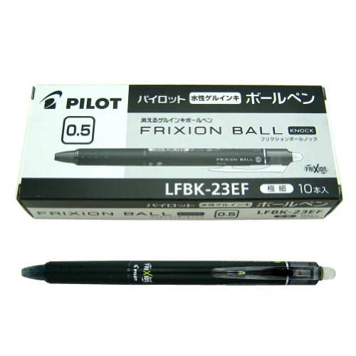 10pcs Pilot LFBK-23EF FriXion Ball Clicker 0.5mm Retractable Gel Ink Erasable Pen (Box Set) - Black Barrel