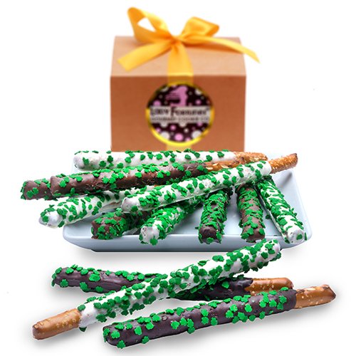-. Title : St. Patrick's Day One Dozen Belgian Chocolate Pretzel Wands Gourmet Gift Box