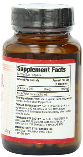 TWINLAB Super CoQ10 (Coenzyme Q10) is a higher potency 50 mg capsule of pure 100% natural Coenzyme Q10. It contains the same potency often used in scientific studies.