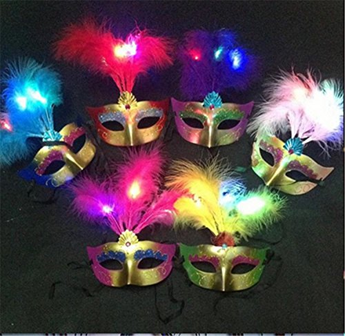 -. Brand : OliaDesign -. Department : unisex-adult -. EAN : 0708624746709 -. Feature : Includes 6 assorted metallic masks with ribbon ties / Rigid plastic is sturdy and can be embellished or decorated / One size fits most - teen to adults / Ideal for a masquerade ball, theme parties, New Year's Eve, Mardi Gras -. ProductGroup : Apparel -. ProductTypeName : ADULT_COSTUME -. Size : One Size -. Title : LED Light Venetian Costume Party Mask Masquerade Plastic Metallic Halloween Masks -. UPC : 708624746709