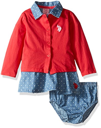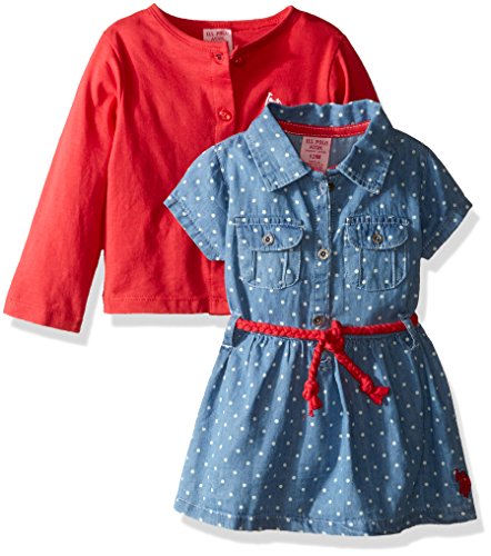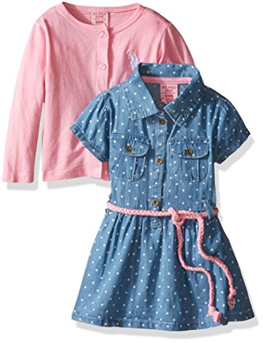 -. Binding : Apparel -. Brand : U.S. Polo Assn. -. Department : baby-girls -. Feature : Short sleeve denim dress has box pleat flap chest pockets with buttons / Button front placket / Braided belt / Sweater cardigan is cropped / Embroidered logos -. Label : US Polo Assn. Children's Apparel -. Manufacturer : US Polo Assn. Children's Apparel -. Model : KU21 -. PackageQuantity : 1 -. ProductGroup : Apparel -. ProductTypeName : PANTS -. Publisher : US Polo Assn. Children's Apparel -. Studio : US Polo Assn. Children's Apparel -. Title : US Polo Assn Baby Girls Denim Dress & Cardigan