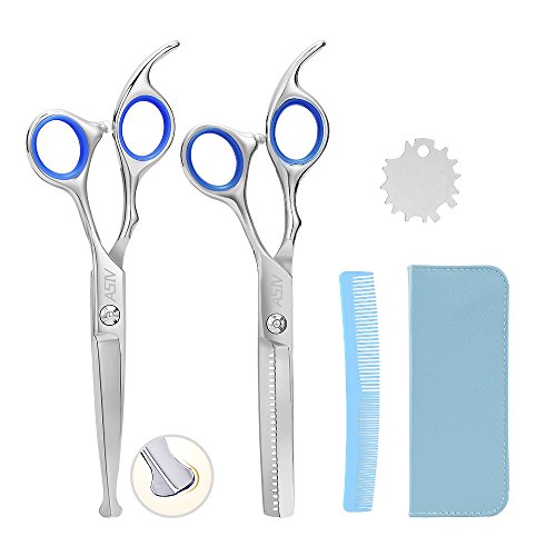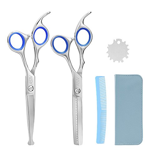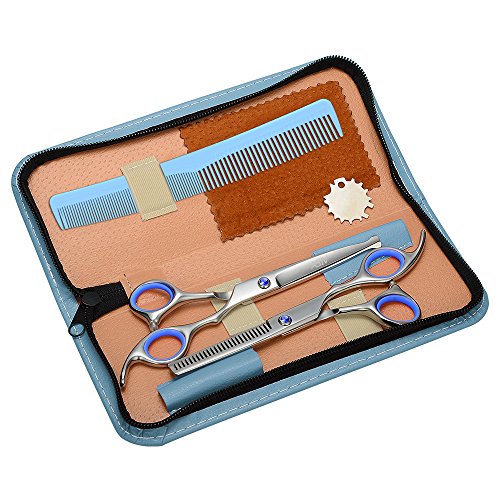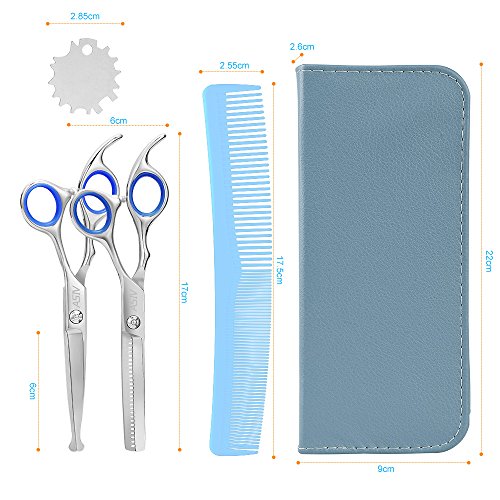 Specifications: Material: Stainless Steel Thinning Rate: 30% Length: about 17cm Suitable for hairdresser or home. Package Includes: 1 * Regular hair scissors 1 * Thinning scissors 1 * Grooming comb 1 * Leather cleaning cloth 1 * Case 1 * Screw Regulator 0