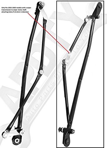 Studio : APDTY Publisher : APDTY Product Description Brand New Windshield Wiper Transmission Linkage Assembly Fits Models Below With 10.3mm Hole That Attaches To Motor Only Fits 2002-2004 Dodge Ram 1500 Pickup w/10.3mm Wiper Motor Shaft Fits 2002-2004 Dodge Ram 2500 Pickup w/10.3mm Wiper Motor Shaft Fits 2002-2004 Dodge Ram 3500 Pickup w/10.3mm Wiper Motor Shaft If You Have The Smaller 8.5mm Wiper Motor Shaft, See APDTY 103926 Wiper Motor Sold Separately Replaces Mopar 68043386AA, 68043386AB, 68043386AC 0
