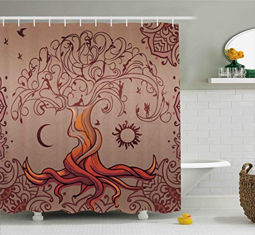 Ethnic Shower Curtain by Ambesonne, Vintage Tree of Life with Sun and Moon Elf on Branches Enchanted Universe Image, Fabric Bathroom Decor Set with Hooks, 70 Inches, Purple