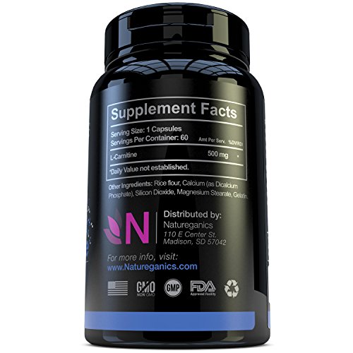 -. Binding : Health and Beauty -. Brand : Natureganics -. EAN : 0636173860105 -. Feature : Pure L-Carnitine is a modified amino acid that supports cellular energy production by assisting in the transport of fat into the mitochondria where it is oxidized and converted into ATP (chemical energy for the cell). Pure L-Carnitine is in a highly bioavailable form of L-Carnitine that can cross the blood-brain barrier, where it exerts an antioxidant effect, helps to maintain healthy cellular energy metabolism and supports brain function / #1 PREMIUM Source Of Carnitine ● Due to it's ability to pass through the blood brain barrier, Acetyl L-Carnitine is the MOST POTENT form of carnitine for boosting energy and alleviating age related side effects like neurological decline and chronic fatigue. / Pure L-carnitine is one of the most versatile supplements available perfect for all athletes. Carnitine helps the body convert food to energy providing support for endurance exercise (aerobic) and during recovery from high intensity activities such as weightlifting and sprinting (anaerobic). Helps to maximize muscle carnitine concentrations at the gym or before athletic competition / L-Carnitine is an amino acid found in most cells in the body, including brain, nerve, heart, liver and sperm cells. L-Carnitine supports energy production via the metabolism of fatty acids to yield the universal energy molecule ATP.* As an antioxidant, L-Carnitine helps to protect neurons affected by superoxide radicals -. Label : Natureganics -. Manufacturer : Natureganics -. ProductGroup : Health and Beauty -. ProductTypeName : HEALTH_PERSONAL_CARE -. Publisher : Natureganics -. Studio : Natureganics -. Title : Natureganics L-Carnitine Pure Essential Amino Acids Supports Exercise Recovery, Boosts Cellular Energy, Helps Cognitive Response, 500mg Daily, 60 Capsules Manufactured in USA! -. UPC : 636173860105