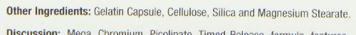 -. Feature : Once daily, 500 mcg / 12 Hour time release / Powerful chromium picolinate