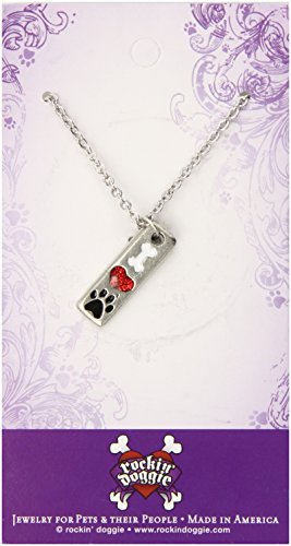 -. Title : Rockin' Doggie Pewter Paw Necklace, Bone/Heart/I Love My Dog
