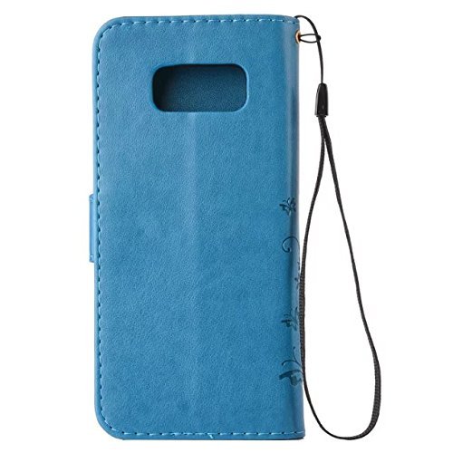 Auroralove Samsung J7 Luxury Handmade Bling Rhinestone Soft Slim Flip Stand Wallet Case for Samsung J7 Flower Butterfly PU Leather Case for Girls Women (Samsung galaxy J7, Blue)
