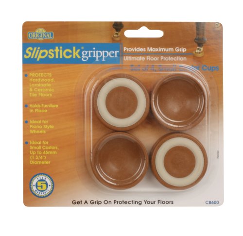 -. Binding : Tools & Home Improvement -. Brand : Slipstick -. Feature : Provides maximum grip and floor protection / Will support up to 500-Pound per cup / Recommended to hold a wheel no larger than 1-3/4-Inch -. Label : Slipstick -. Manufacturer : Slipstick -. Model : CB600-PARENT -. NumberOfItems : 1 -. PackageQuantity : 1 -. ProductGroup : Home Improvement -. ProductTypeName : HARDWARE -. Publisher : Slipstick -. Studio : Slipstick -. Title : Slipstick Small Castor Cup Gripper -. Warranty : 5-Year free replacement warranty