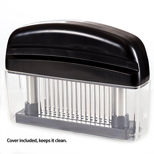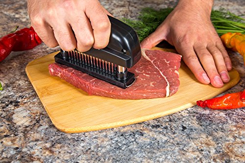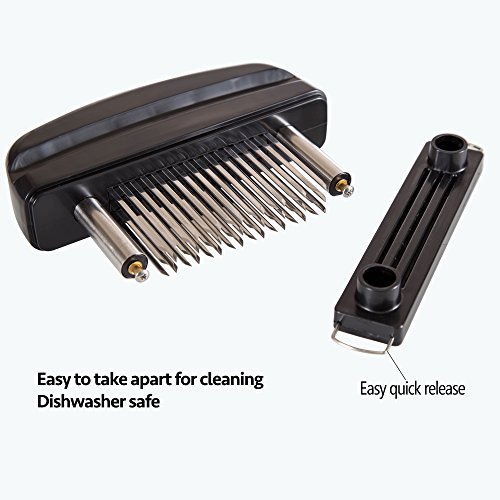- SAVE TIME - 48 Ultra Sharp Blades penetrate meats up to 1 inch, allows the marinate sauce to permeate into the tissues quickly and deeply, greatly shortens marinating time. Reduces the cooking time up to 40%, It is the ultimate tenderizing tool for kitchen, BBQ, restaurant etc!