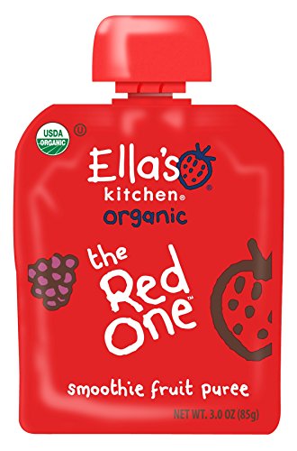 -. Feature : One 18 count box of Ella's Kitchen 6+ Months Organic Fruits Variety Pack / Includes "Apples + Strawberries", "Red Smoothie Fruits" and "Peaches + Bananas" baby food / No artificial preservatives, additives or thickeners / For babies 6 months and older / USDA-Certified Organic