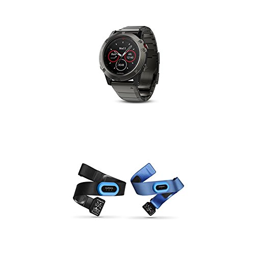 Garmin Fenix 5X Sapphire - Slate Gray with Metal Band and HRM-Tri and HRM-Swim Accessory Bundle