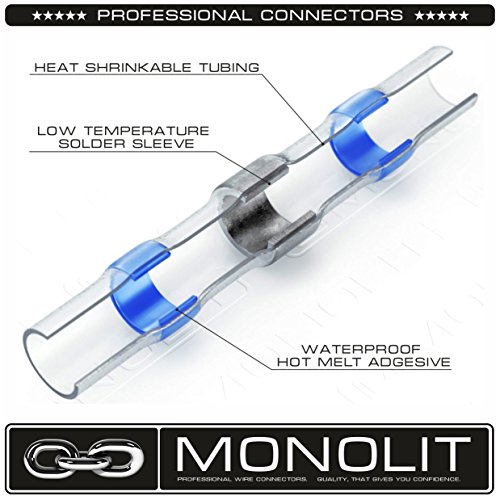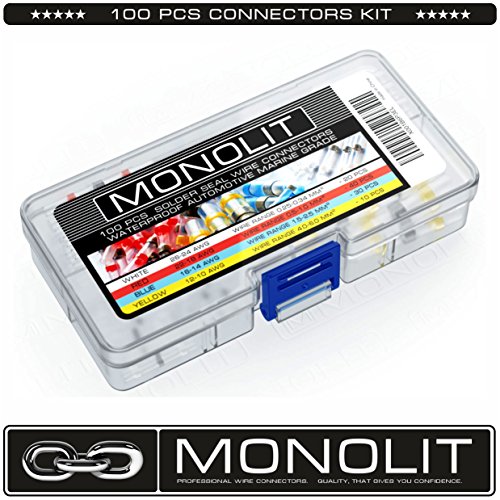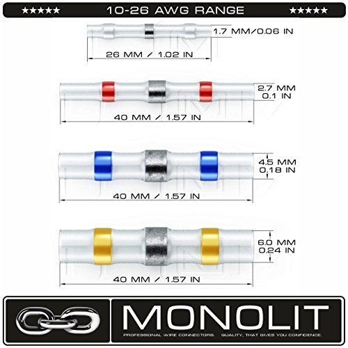 MONOLIT 100pcs Solder Seal Electrical Connectors, Waterproof Marine Automotive Wire Connector Kit, Heat Shrink Butt Connectors, 10 - 26 awg.