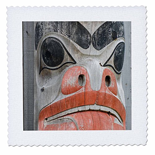 3dRose qs_207960_5 Totem Poles, Haida Heritage Centre, Kay Llnagaay, Haida Gwaii, Canada. Quilt Square, 14 by 14"