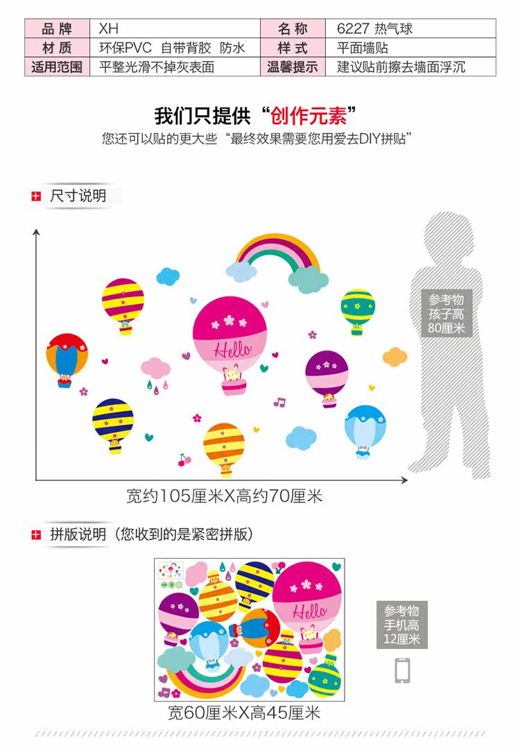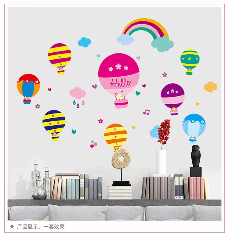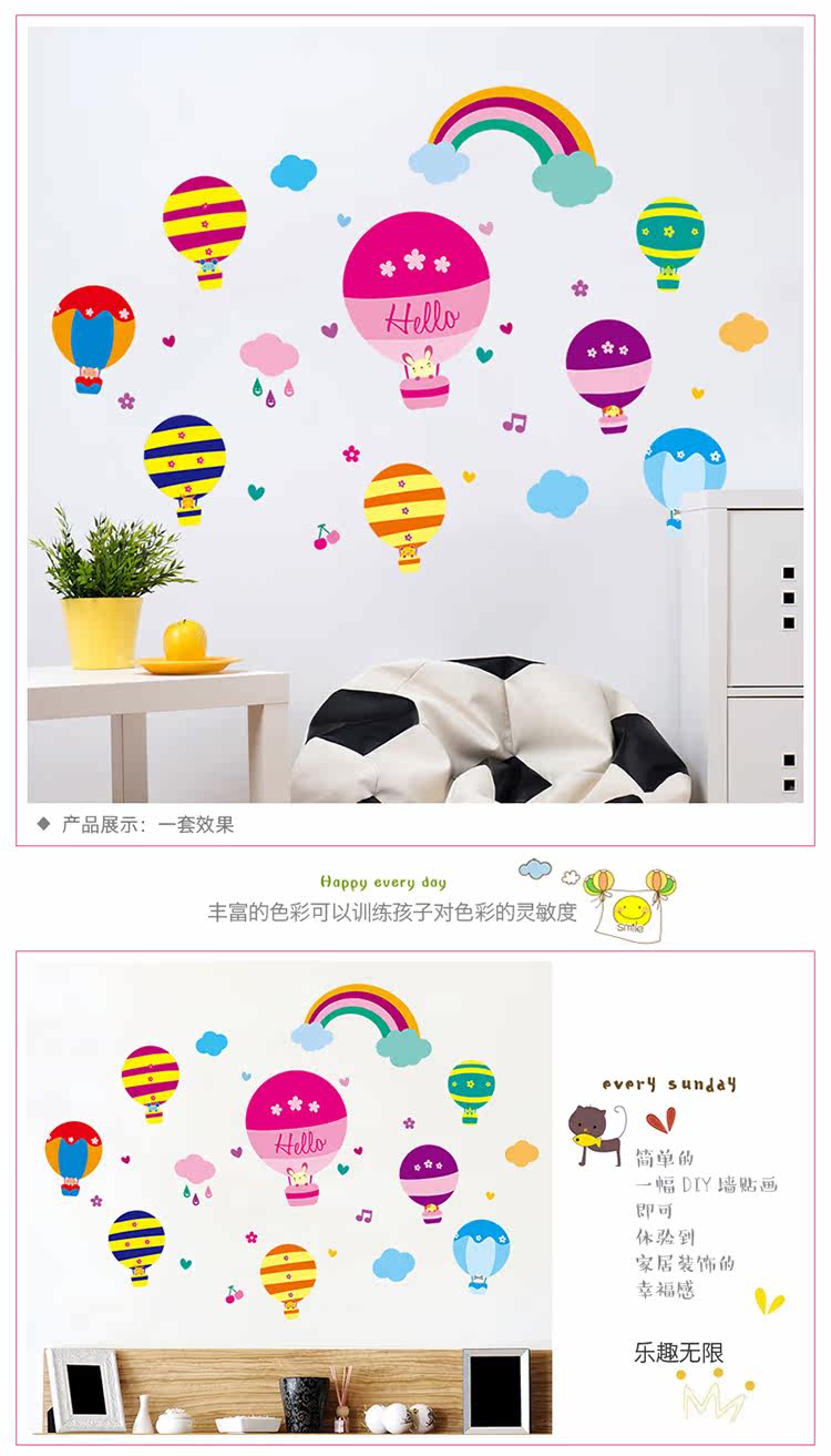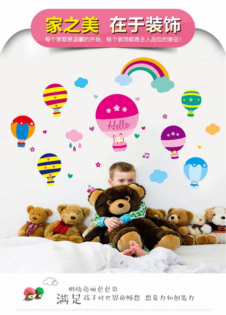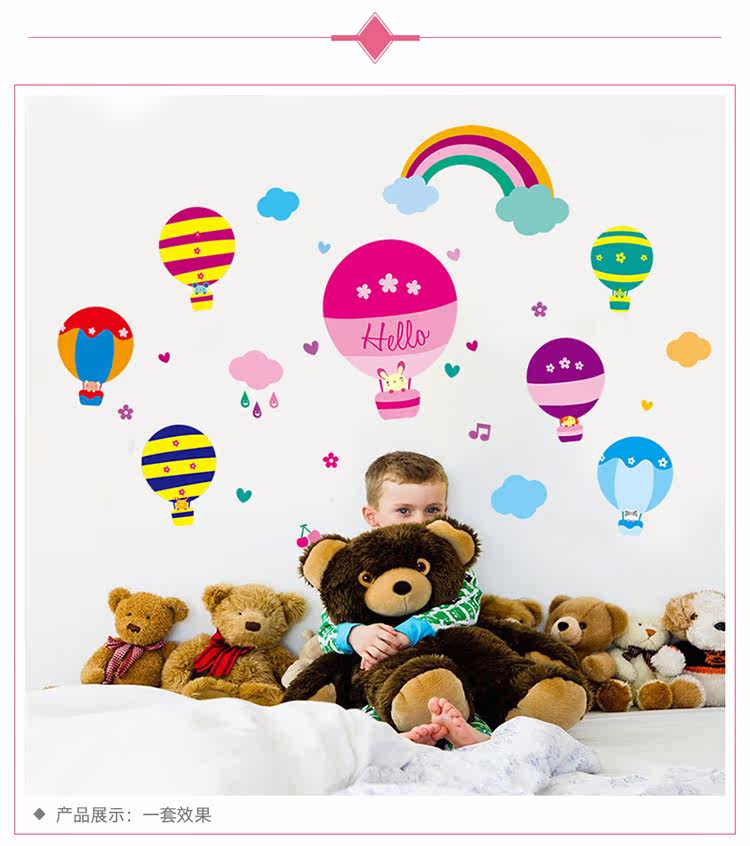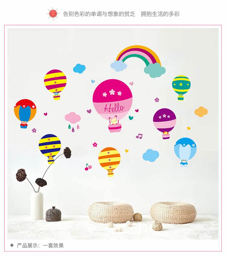 幼儿园墙壁儿童房间宝宝卧室卡通热气球装饰布置可移除墙贴纸贴画