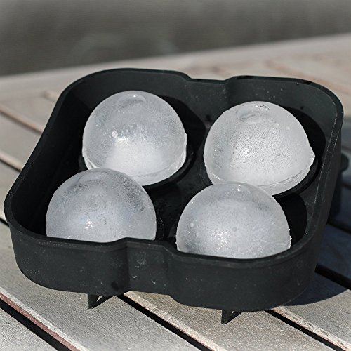 iNewcow Silicone Mold Ice Ball Maker Cubes Tray 4 Whiskey Ice Balls Black Color 12124.5CM