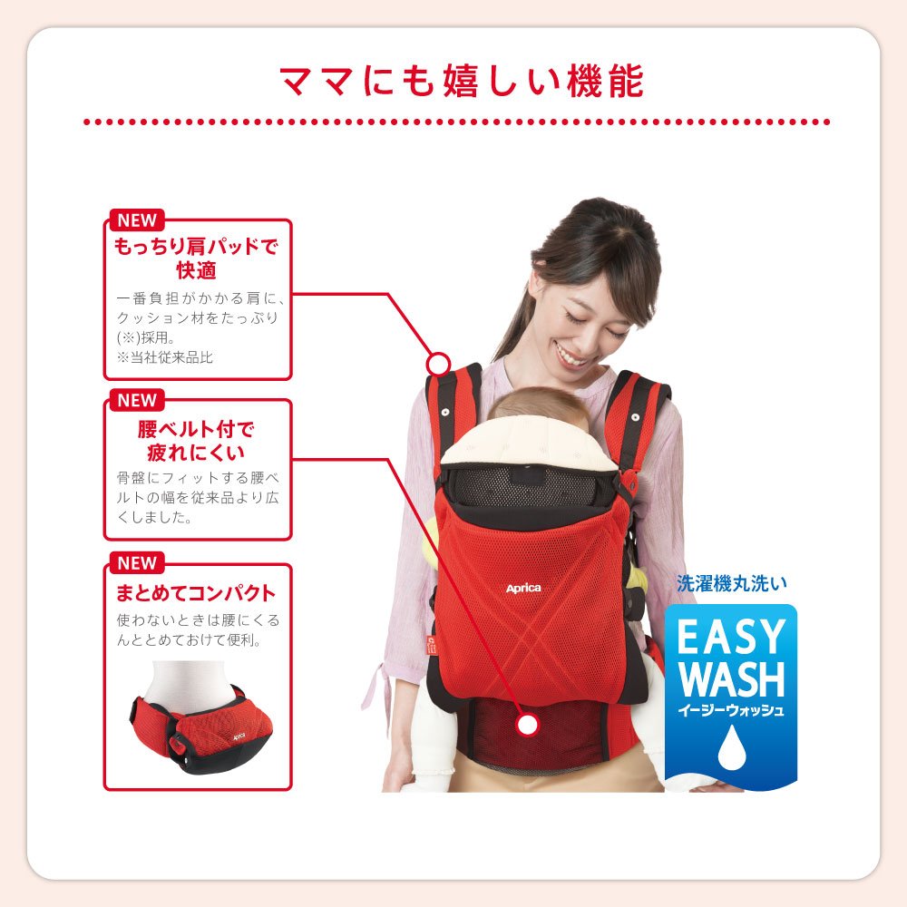 Because it supports a hug for a long time with a shoulder and waist, it is hard to get tired and pleasant comfortable.