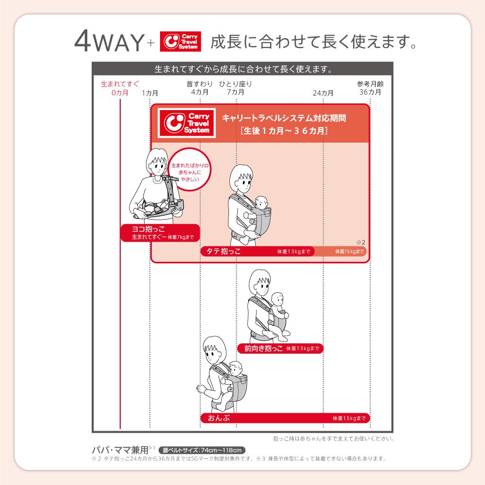 ⇒ A moderate space is created between the baby and the mother, and the size design enables a comfortable space that is easy to embrace.
