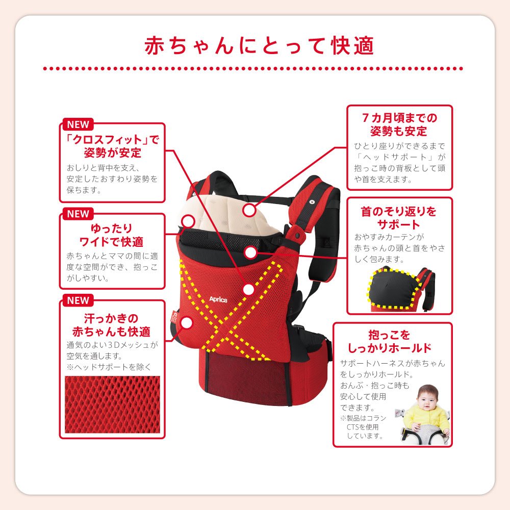 It stabilizes the head and neck of the baby before sitting down, and holds a horizontal coat that does not squeeze stomach comfortably in the baby.
