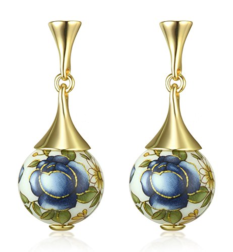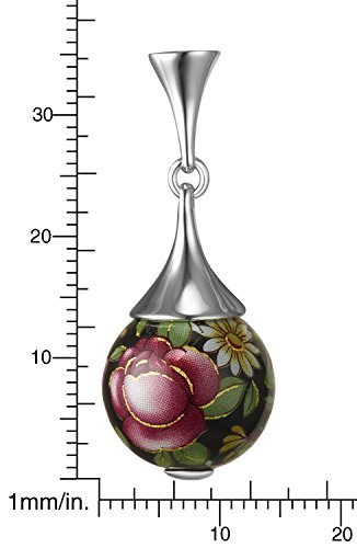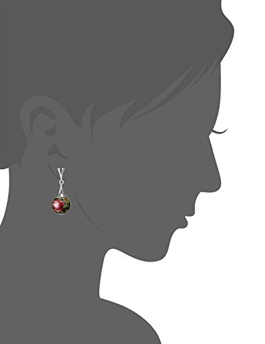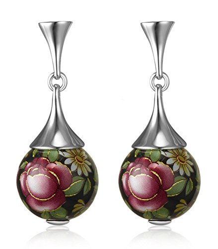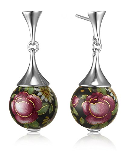Rhodium plated sterling silver ball earring featuring hand paint red flower black base ball. Imaging floral smell of exotic garden