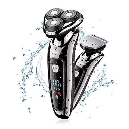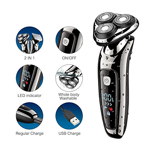 Hatteker Mens Electric Shaver Razor Beard Trimmer Rotary Shaver Cordless Sideburn Trimmer Wet/Dry 2 in 1 USB Rechargeable Waterproof Classic Black