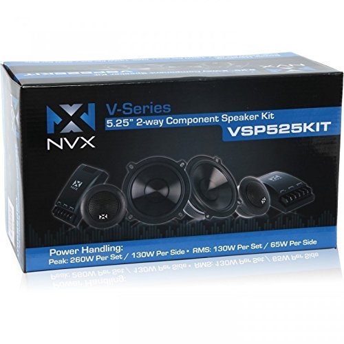 NVX® 5 1/4 inch True 130 watt RMS 2-Way Component Car Speaker System [V-Series] with Silk Dome Tweeters [VSP525KIT]