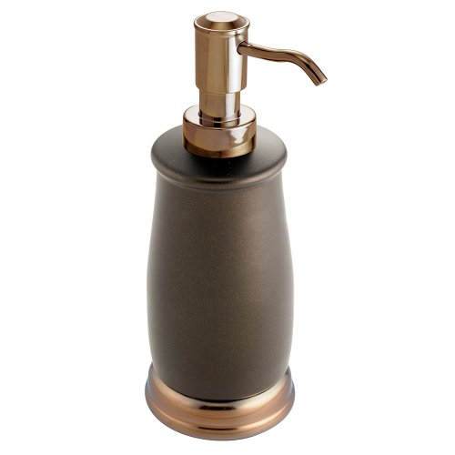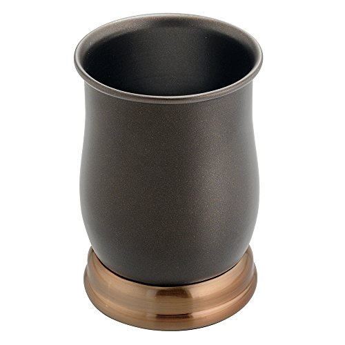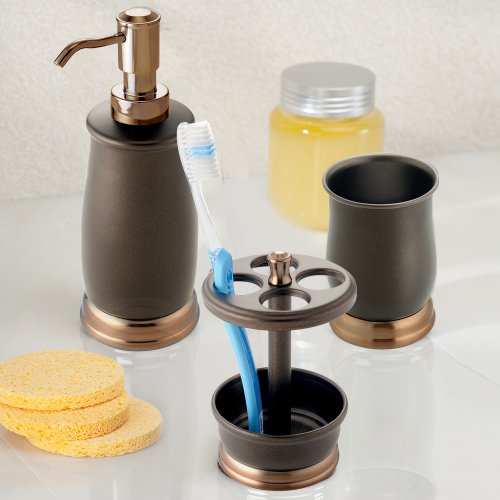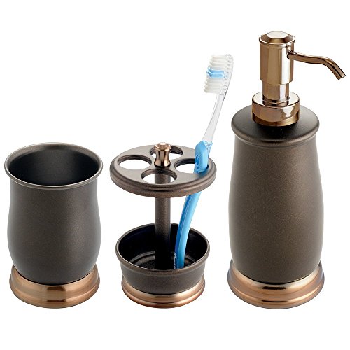 mDesign Metal Bath Accessory Set, Soap Dispenser, Toothbrush Holder, Tumbler - 3 Pieces, Two-Tone Bronze