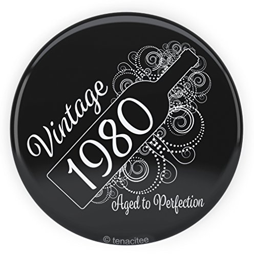 Binding : Apparel Product Description Born in 1980 - Aged Like a Fine Wine 2.25" Button by Tenacitee. Express yourself! Buttons are the perfect way to let the world know how you feel. Our buttons are designed, printed, and handmade at Tenacitee's studio in Oklahoma. Proudly made here in the USA! This 2.25" button has a metal shell with pinback and mylar cover to protect from scratches. Perfect to decorate your shirt, jacket, bag, or put anywhere else you want! It's a great gift or giveaway for parties. 0