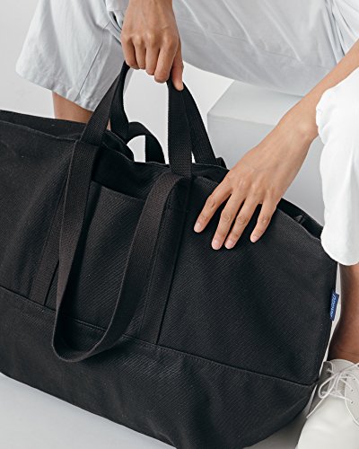 -. Brand : BAGGU -. ClothingSize : OneSize -. Department : unisex-adult -. Feature : A roomy and durable canvas bag for weekend travel or everyday toting. / Updated design features exterior pocket for easy access on the go. / Two sets of handles for in hand carrying or over the shoulder toting. / 15.5 in. H x 26 in. W x 10.5 in. D. / 100% recycled cotton. -. Label : BAGGU -. Manufacturer : BAGGU -. Model : WEEKEND-IND -. NumberOfItems : 1 -. PackageQuantity : 1 -. ProductGroup : Apparel -. ProductTypeName : LAGE -. Publisher : BAGGU -. Size : OneSize -. Studio : BAGGU -. Title : BAGGU Weekend Bag 2