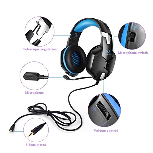 Basictune G1200 Stereo Gaming Headphones Headset with Microphone for PC PS4 Xbox (Blue)