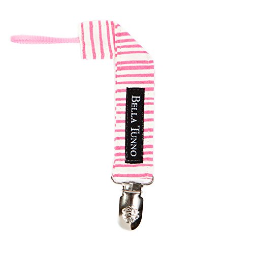 -. Title : Bella Tunno Pacifier Clip, Pink Thin Stripe
