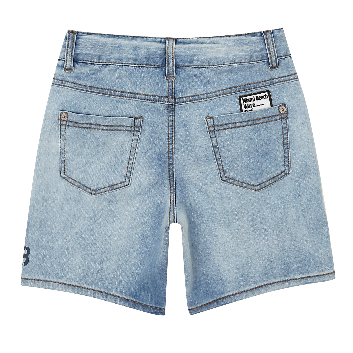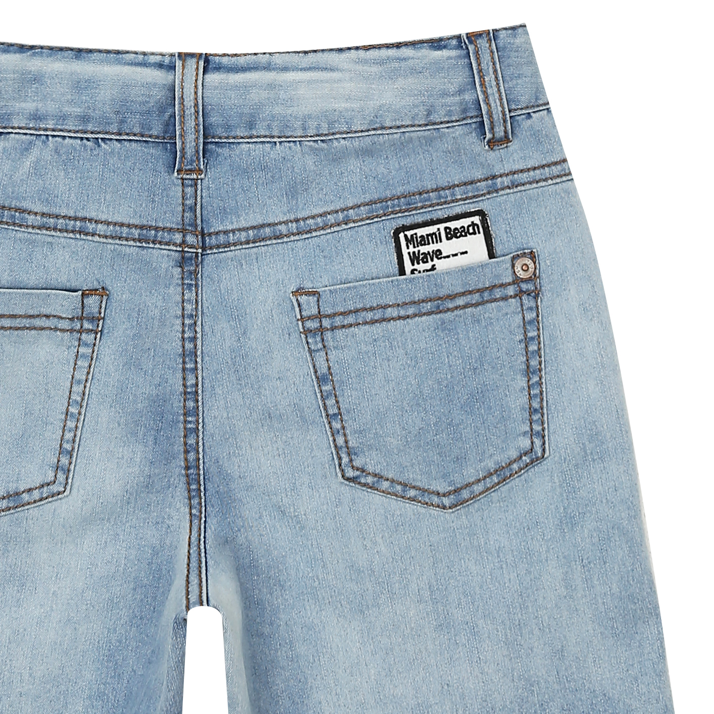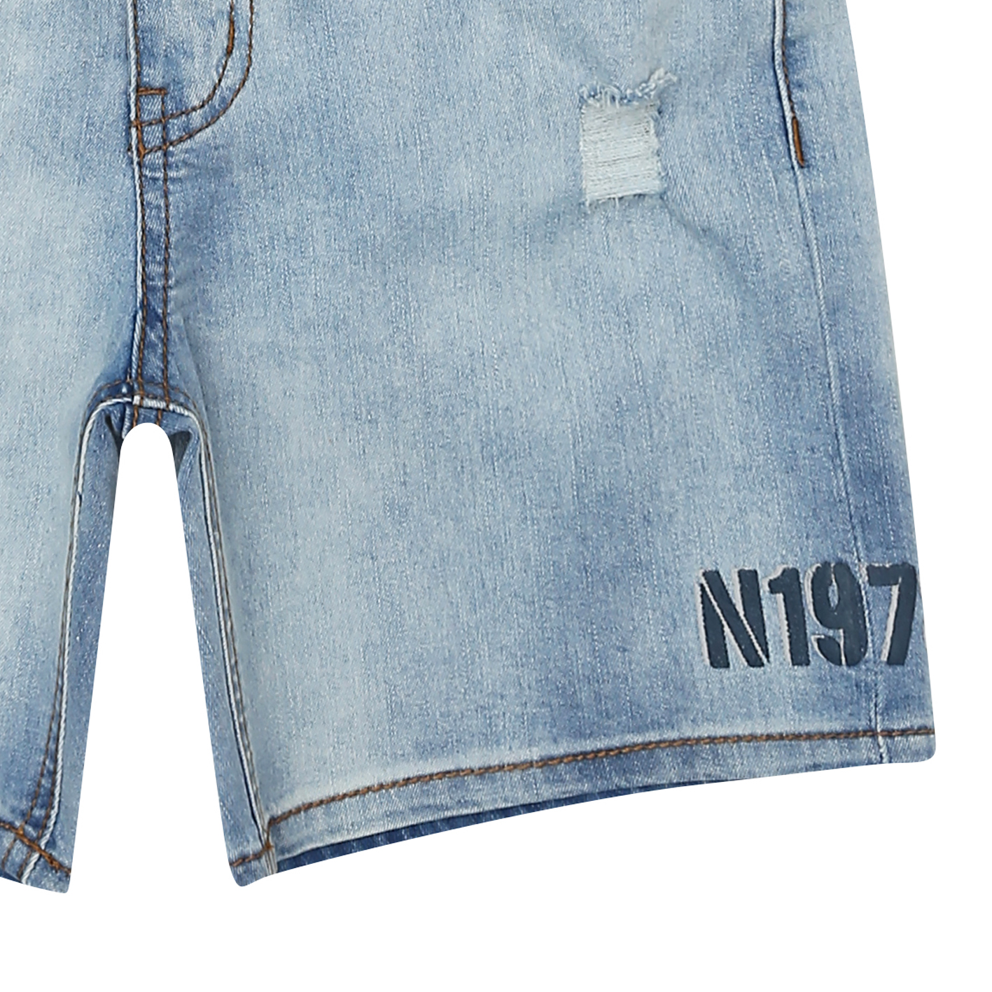 밝은 아이스톤 워싱의 오픈형 4.5부 데님팬츠로, 한여름에 COOL한 느낌의 활동성 좋은 유니 아이템.