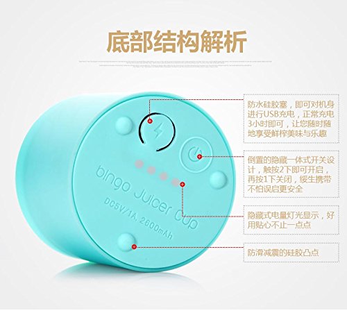 Tips: 1. Rechargeable mini juicer- it requires to charge about 3 hours with the boxed usb cable before use. 2. Do not touch the bottle when temperature inside over 75 degrees. 3. Can't be put into microwave or dishwasher. Keep the charging pot from water while cleaning. 4. Not for child under 6 years old.