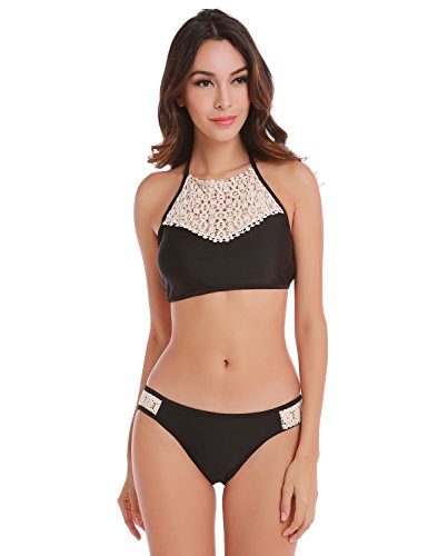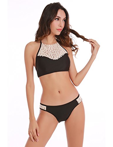 Title : Blooming Jelly Women's Crochet Bikini Two Piece Swimsuit Swimwear,Black,Small