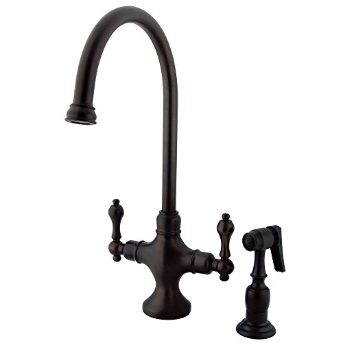 Elements of Design ES1765ALBS Vintage 2-Handle Kitchen Faucet with Brass Sprayer, 7- 7/8", Oil Rubbed Bronze