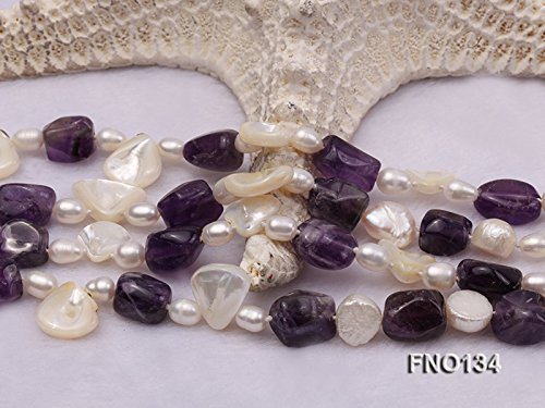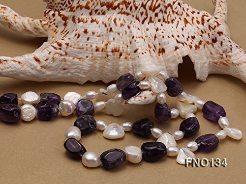Description *This is a fabulous necklace made with 9x13mm purple irregular amethyst, white irregular mabe pearl and white pearl beads.