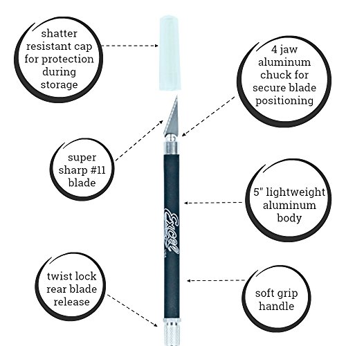 - Light weight, aluminum body with comfortable soft grip handle fits all standard craft knife blades including Xacto Knife