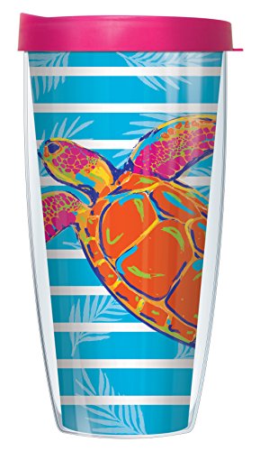 Sea Turtle On Light Blue Stripe Wrap 22 Oz Super Traveler Tumbler Mug with Lid