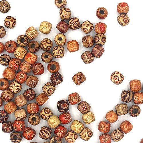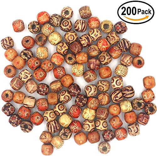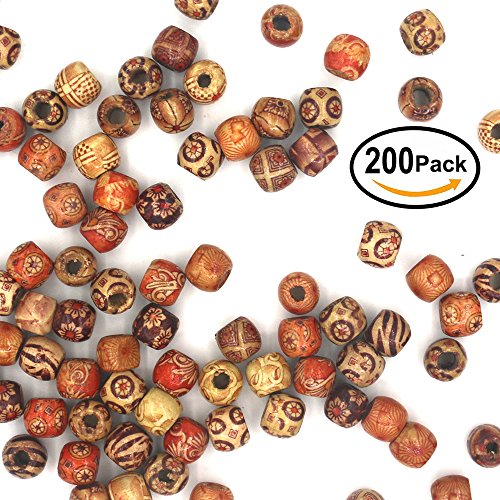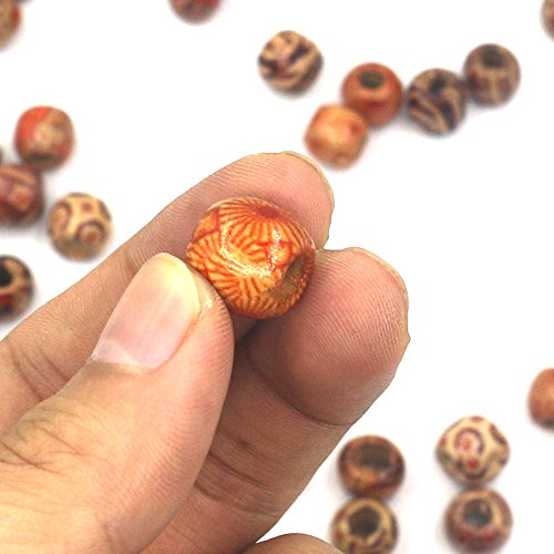 Mahoo 200Pcs 12mm Wooden Beads Round Painted Pattern Barrel DIY Loose Wood Beads for Jewelry Making Bracelet Supplies, Crafts, Hair