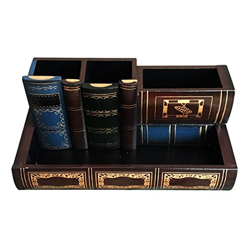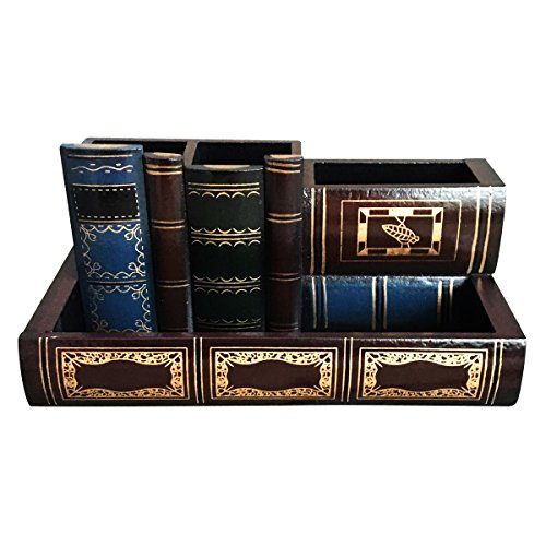 Tosnail Decorative Wooden Pencil Holders Desk Organizer - Library Book Design