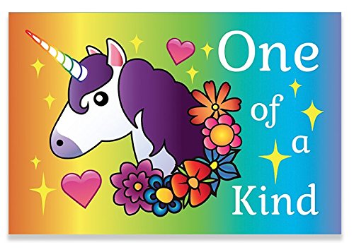SET OF 2 - 2”x3” REFRIGERATOR EMOJI MAGNETS Unicorn Magnets features Emoji Unicorn with Flowers “One of a Kind” and Rainbow Unicorn “Cute to the Core” Rectangle Magnets